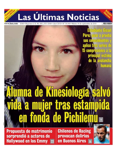 La estudiante de la carrera de Kinesiología, Gissel Pérez, fue destacada por varios medios nacionales por los primeros auxilios que le entregó a Anges Wunkhaus, principal víctima de la estampida humana que se generó en lunes pasado en el ingreso a la fonda oficial de Pichilemu “La Bombonera”.