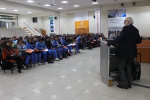 Los estudiantes de la Facultad de Ciencias de la Salud escucharon atentamente el relato de Hernán Sandoval, quien dio a conocer el trabajo que realizó durante el gobierno de Ricardo Lagos para poder levantar esta reforma en el sistema de salud.