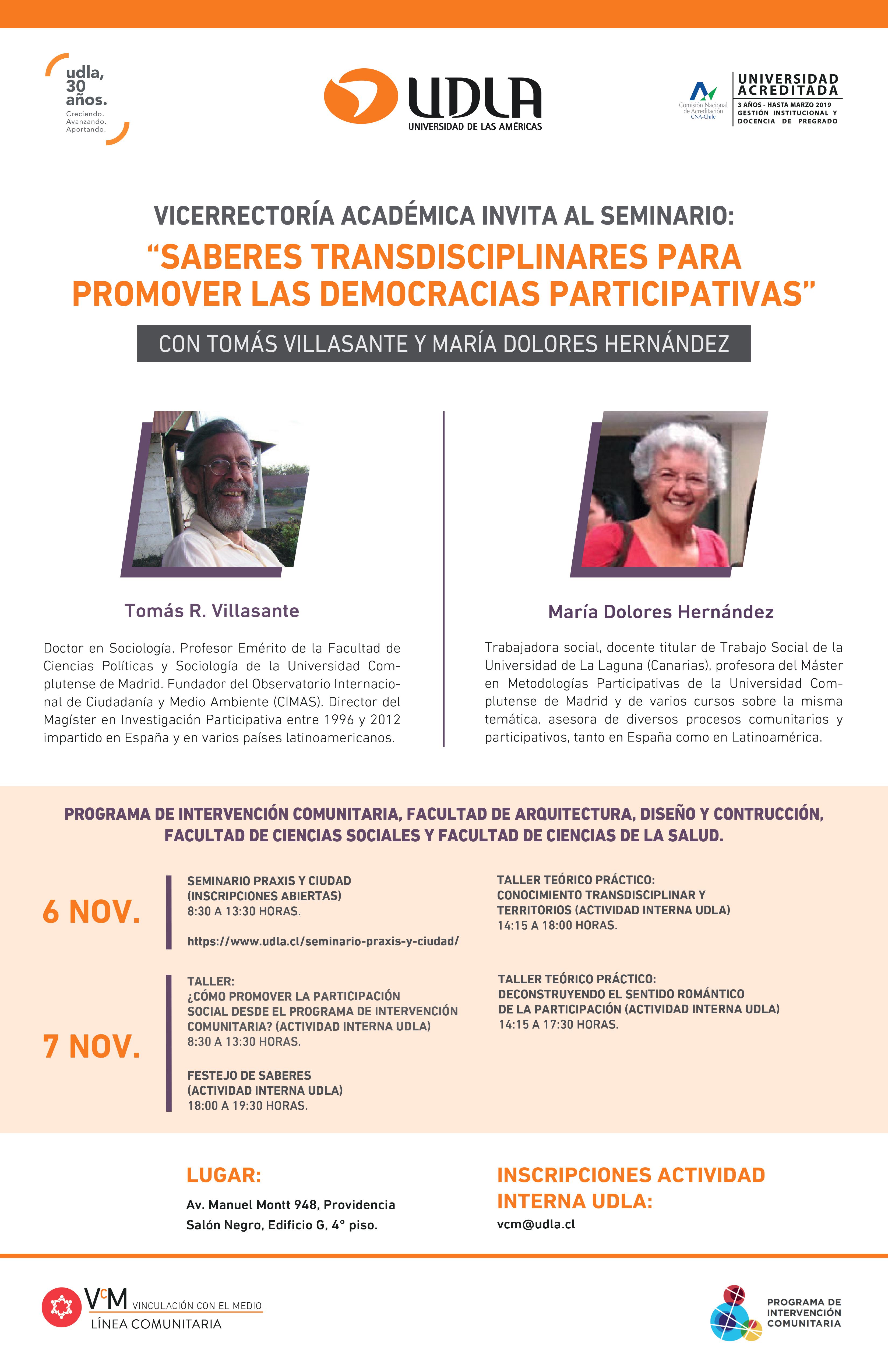 Inicio » 6 y 7 de noviembre. Seminario: “Saberes transdisciplinares para promover las democracias participativas”. Organiza: Programa de Intervención Comunitaria