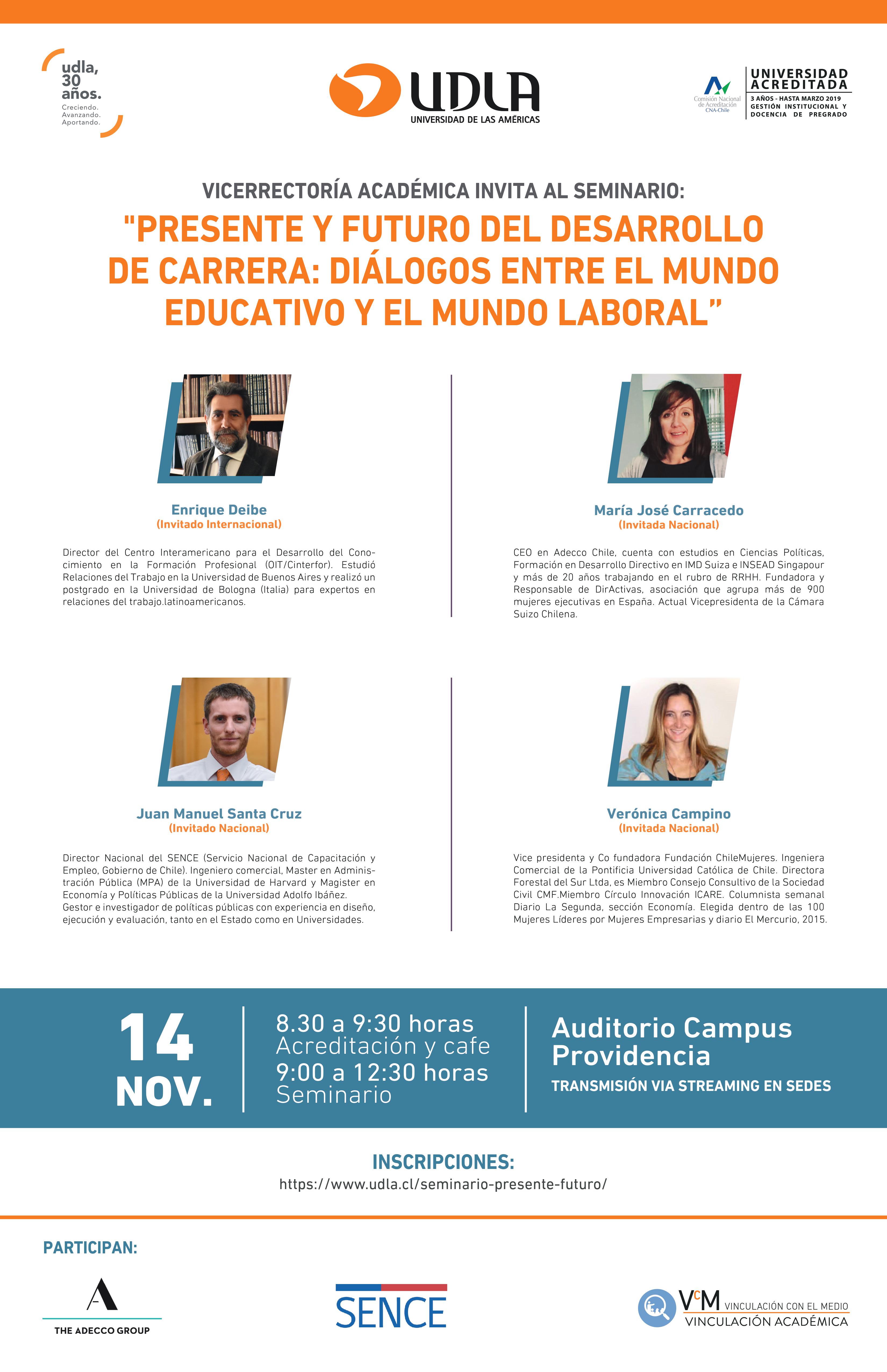 Inicio » 14 de noviembre. Seminario “Presente y futuro del desarrollo de carrera: Diálogos entre el mundo educativo y el mundo laboral”. Organiza: Vicerrectoría Académica
