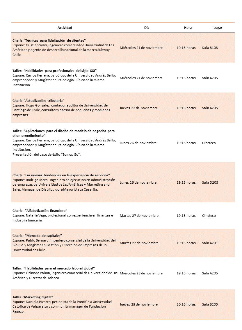 Inicio » 21 al 29 de noviembre. Ciclo de charlas: “Formación de profesionales del siglo XXI”. Organiza: Carrera de Ingeniería Comercial, Sede Santiago