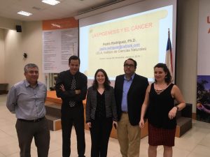La charla de Pedro Rodríguez contó con la participación del Director del Instituto de Ciencias Naturales, Pablo Figueroa; el coordinador del Instituto en el Campus Maipú, Pablo Pichunman y Carola Montecino, enfermera especializada en oncología y académica-coordinador de la Escuela de Enfermería.