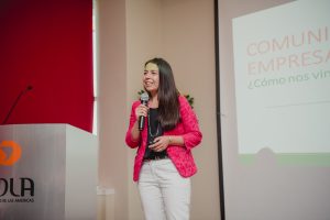 La expositora invitada fue la periodista, doctora en Ciencias de la Comunicación y Sociología, magíster en Comunicación Persuasiva de la Universidad Complutense de Madrid, y gerente general de Irade, Carolina Parada, quién abordó el tema “Comunicación empresarial: ¿Cómo nos vinculamos con nuestros públicos?”.
