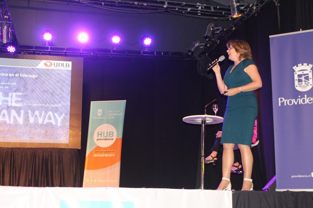Durante la actividad, la Prorrectora expuso sobre el liderazgo de la mujer tanto en Chile como en el mundo, frente a una audiencia de emprendedoras de la comuna de Providencia. Recordó que las mujeres representan hoy en el país el 49% de la fuerza laboral, pero que solo el 9% de ellas participa en directorios, así como menos del 20% de los ingenieros son mujeres (Board Index 2016). Agregó que, en países como Estados Unidos, la situación no es mucho mejor, ya que la participación laboral supera el 57%; sin embargo, solo el 5% de los CEO de empresas listadas en Fortune 500 es mujer, al igual que hay solo un 23% de representación femenina en el Senado, por ejemplo.