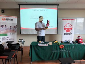 El taller de Juguete Adaptado lo realizó el terapeuta David Saavedra, coordinador de la Unidad de Tecnología Asistiva de Teletón, quien mostró cómo intervenir juguetes para pacientes con dificultad de movimiento. “Para Teletón es de gran valor compartir experiencias con profesionales y estudiantes relacionados a la rehabilitación. Un taller como este nos da la posibilidad de difundir nuestro quehacer y entregar conocimientos y nuevas herramientas para futuros terapeutas ocupacionales”, expresó Saavedra.
