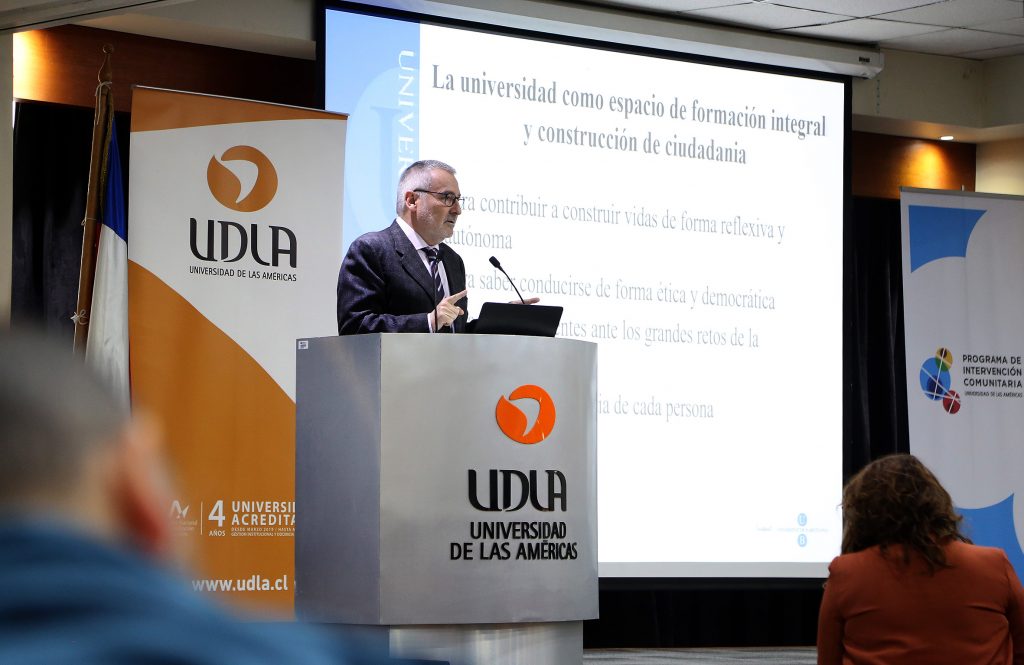 El martes 4 de junio, Miquel Martínez, dictó la charla magistral: “Formación ciudadana y valórica en la universidad”, a la que asistieron expertos de distintas instituciones, como la Universidad Santo Tomás, Universidad Cardenal Silva Henríquez, Universidad de Santiago de Chile y Universidad Bernardo O´Higgins; así como también representantes de organizaciones de la sociedad civil. Luego de esta instancia abierta a otras instituciones de educación superior, se realizó una academia curricular titulada “Requisitos Institucionales en la Formación Ciudadana y Aprendizaje & Servicio como apuesta formativa”, en la cual participaron todos los directores de Escuela UDLA.