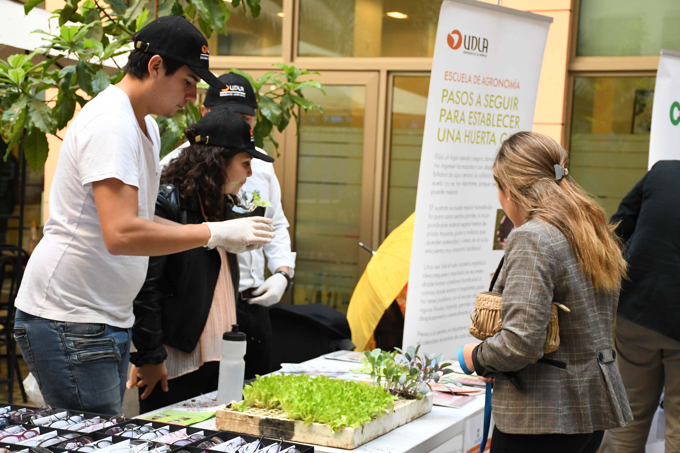 Este año, la Feria de Calidad de Vida, realizada en el edificio de la Secretaría Regional de Desarrollo Social Región Metropolitana, permitió que egresados de la carrera de Agronomía pudieran explicar y orientar a los asistentes en la identificación de plantas, su manejo y cómo producirlas. También, a las personas interesadas en realizar una huerta en su hogar, se les obsequió un almácigo de lechuga para entusiasmarlos en esta tarea sencilla y saludable.