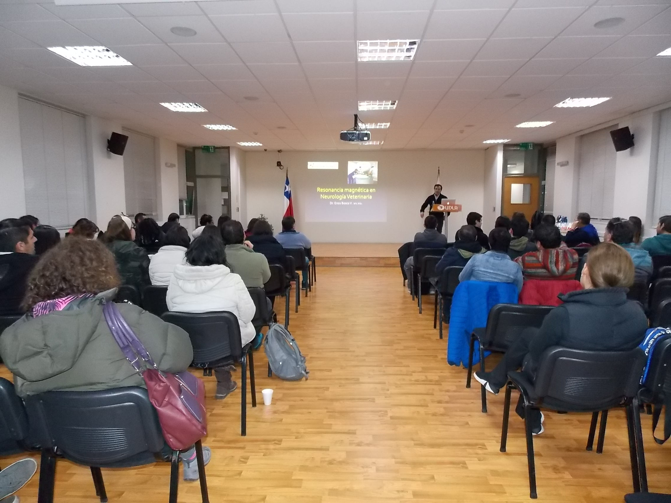 Médicos veterinarios de la Región de Valparaíso, además de académicos, estudiantes y egresados de la carrera de Medicina Veterinaria de la Sede Viña del Mar, participaron en la charla “Resonancia magnética en Neurología Veterinaria”, actividad efectuada en el Campus Los Castaños y cuyo expositor fue el Dr. Enzo Bosco, del Instituto Neurológico Veterinario de La Reina, Santiago.