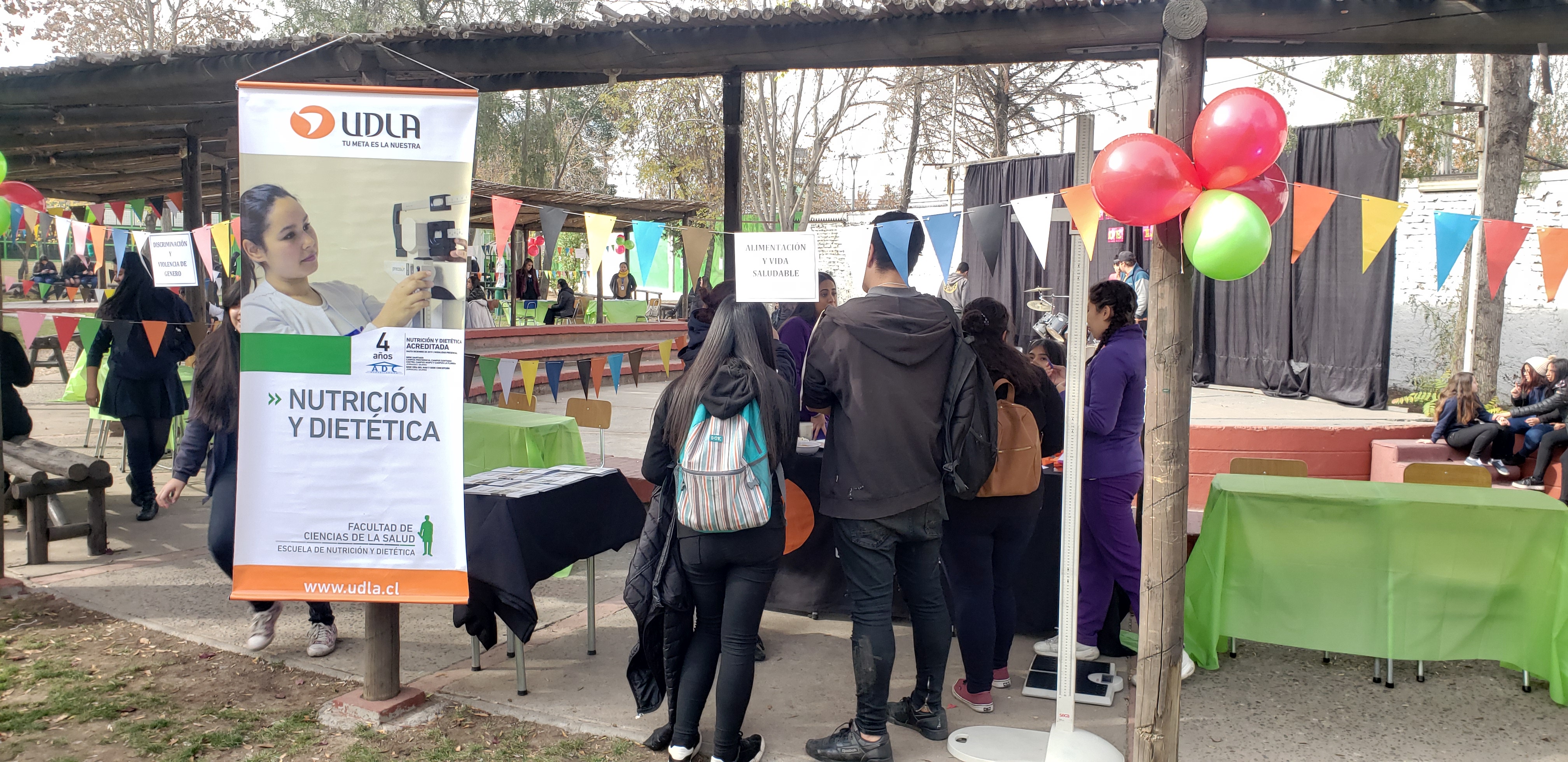 La primera visita se llevó a cabo en el Instituto La Salle. En medio de la “Feria autocuidado”, organizada por el colegio, los estudiantes de UDLA evaluaron el estado nutricional de la comunidad y realizaron una serie de charlas donde abarcaron temáticas como alimentación saludable y los cambios en el etiquetado nutricional de los alimentos.