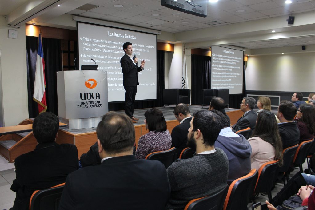 La ponencia de José Alemán en UDLA se centró en un estudio sobre el estancamiento económico que ha tenido Chile durante los últimos años y las posibilidades que tiene el país a futuro de igualar a potencias económicas como Corea del Sur, Taiwan o Irlanda.