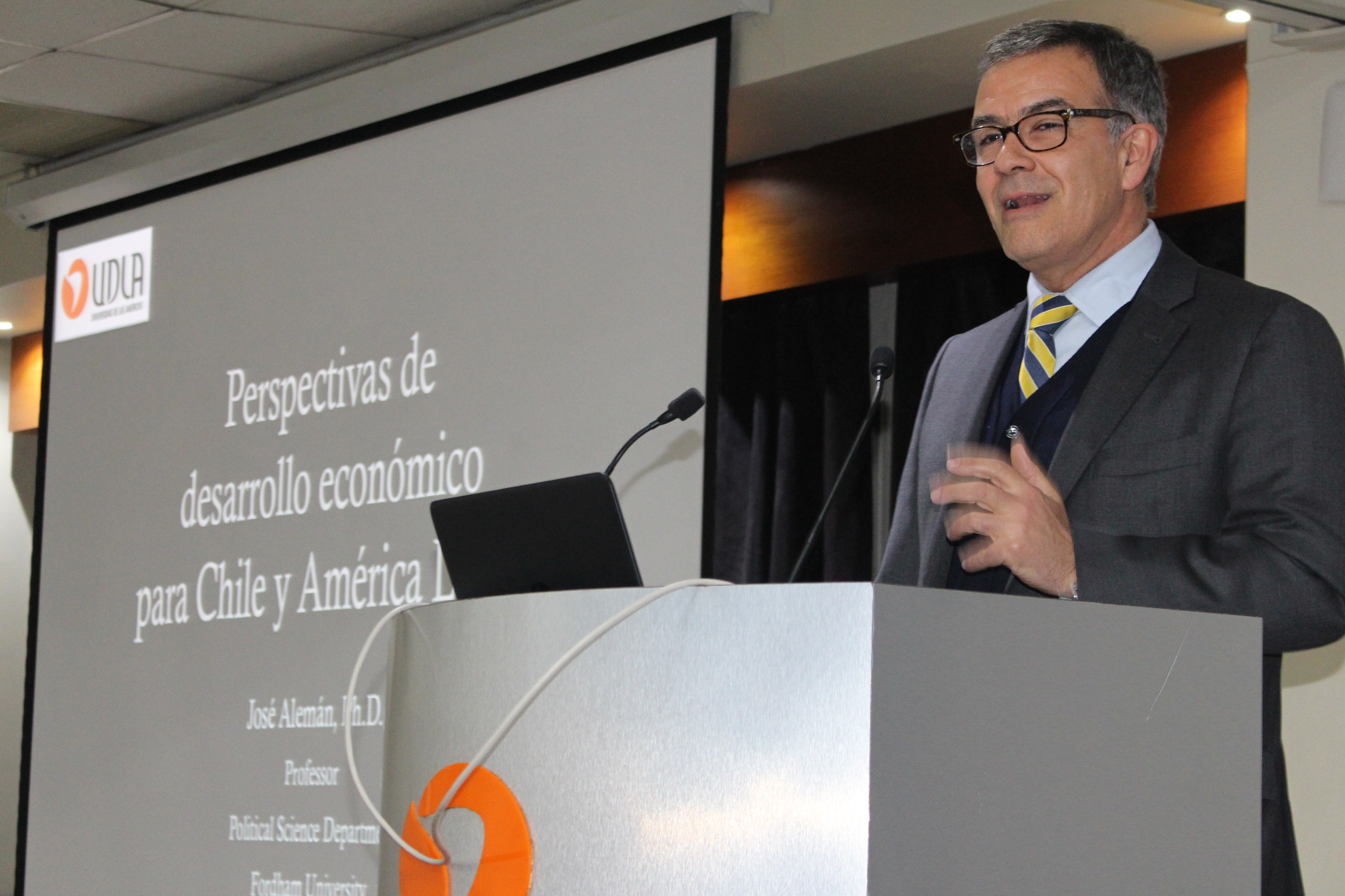 La ponencia de José Alemán en UDLA se centró en un estudio sobre el estancamiento económico que ha tenido Chile durante los últimos años y las posibilidades que tiene el país a futuro de igualar a potencias económicas como Corea del Sur, Taiwan o Irlanda.