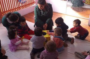 La primera iniciativa fue llevada a cabo por diez alumnas de segundo año de la carrera en el marco de la asignatura Desarrollo de Procesos Cognitivos, a cargo de la docente Patricia Leal, realizando dinámicas, juegos y actividades pedagógicas con niños de sala cuna, nivel medio menor, nivel medio mayor y transición I y II.