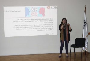 En la Sede Viña y dirigida a los estudiantes de la carrera de Traducción e Interpretación en Inglés, se realizó el conversatorio “Lenguaje inclusivo, no sexista y neutralización léxica”, a cargo de la Licenciada en Trabajo Social y Magíster en Intervención Psicosocial de la Universidad de Valparaíso, Sandra Rojas.