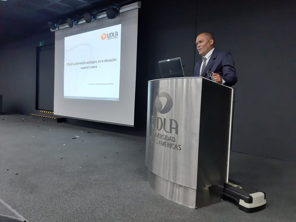 De la delegación cubana, el Dr. Liván Álvarez, Vicedecano de Formación de Universidad de Granma, expuso sobre “La formación axiológica en la Educación Superior Cubana”, compartiendo la labor de la institución de educación superior durante sus cuatro décadas de funcionamiento centrada en estrategias de enseñanza y aprendizajecentrada en valores, con un activo trabajo de extensión en expresiones de vanguardia como el arte y del deporte.