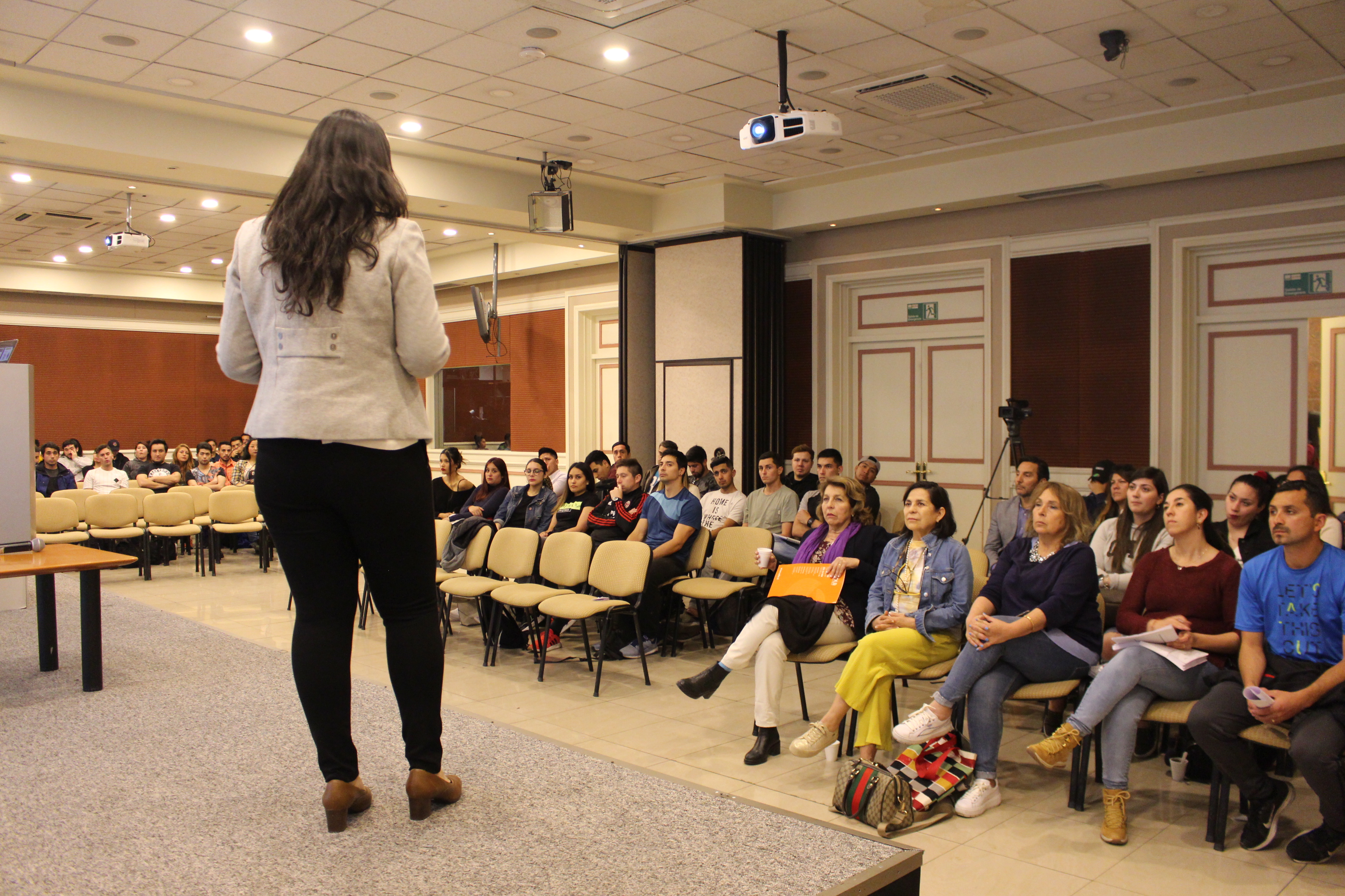 Johana Soto compartió con los estudiantes datos estadísticos de la actividad física en la población preescolar y escolar en Chile y entregó información sobre investigaciones que analizan el foco que deben tener los profesores de educación física cuando arman una clase: “ellos tienen que contribuir en el cumplimiento de las recomendaciones mundiales de la actividad física. No deben pensar esa actividad física solo como un instrumento para la salud, sino que también como una forma de alcanzar la felicidad. Es importante que en nuestras clases logremos que los niños jueguen, la pasen bien y sean felices”.