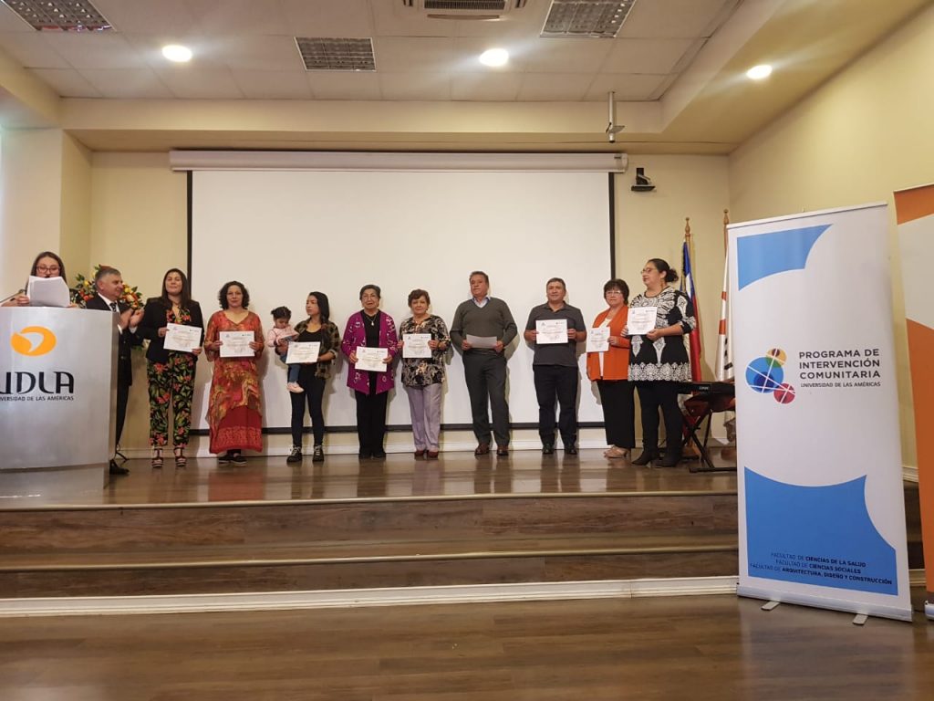 En el Auditorio de Campus El Boldal se llevó a cabo la ceremonia de certificación de la Escuela Comunitaria de Participación Territorial de Los Cerros de Talcahuano y Taller de Metodologías Participativas, iniciativa liderada por el Programa de Intervención Comunitaria de UDLA.