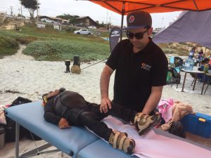 “Las ventajas del deporte es que es multisistémico y el surf en personas en situación de discapacidad tiene un gran componente orientado al equilibrio y movimiento, a la actividad de la musculatura del tronco, a las capacidades de concentración y respuesta. Todo ello es un gran desafío y trae muchos beneficios para los usuarios”, comentó Rodrigo Beltrán, Director de Carrera de Kinesiología, quien junto al académico Rodrigo Muñoz estuvieron a cargo de una de las estaciones para la preparación de los niños para la entrada al agua.