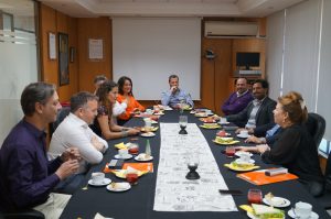 El encuentro de empleadores, organizado por la Facultad de Comunicaciones y Artes, fue encabezado por el Decano Mauro Lombardi, acompañado por los directores de la Escuela de Periodismo, Comunicaciones y Traducción e Interpretación en Inglés.