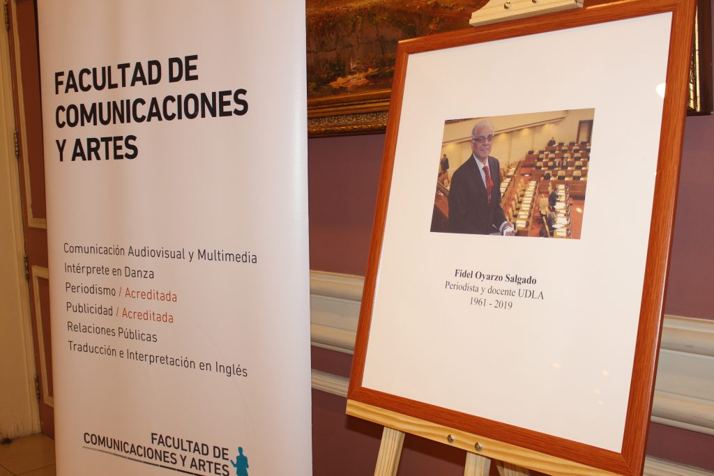 La Facultad de Comunicaciones y Artes junto al Centro de Estudiantes de la carrera de Periodismo, rindieron un emotivo homenaje a la memoria del destacado periodista y docente de UDLA, Fidel Oyarzo, quien falleció el pasado 21 de julio.