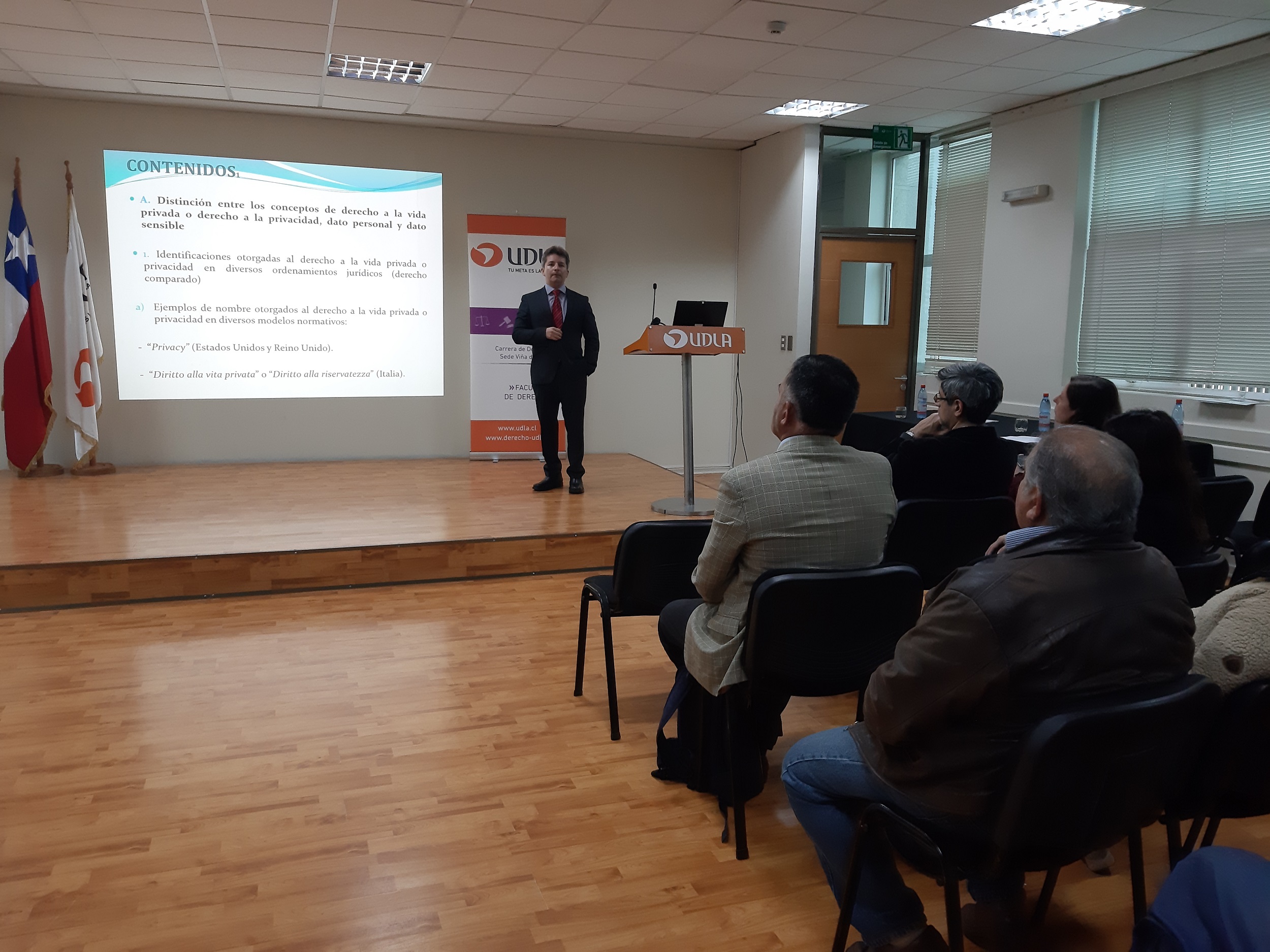 El académico agregó que Chile tiene un retraso muy importante a nivel normativo, no solamente si se hace comparación con el contexto europeo, que es el más avanzado, sino que también con respecto a América Latina, situación que urge ser superada: “Hay un proyecto de ley en curso en este momento en Chile, que esperamos logre mejorar el tratamiento de la información personal a partir de la ley que se pretende actualizar”.