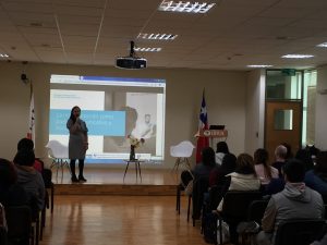 En la instancia, los estudiantes de la carrera pudieron conversar con la profesional y recibir de primera fuente la experiencia de la intérprete, quien cuenta con una trayectoria de más de diez años en centros hospitalarios estadounidenses.